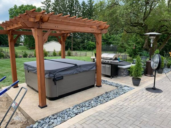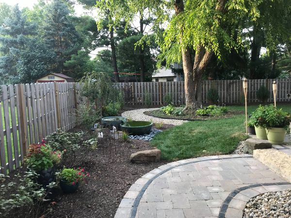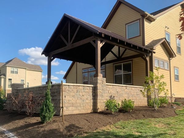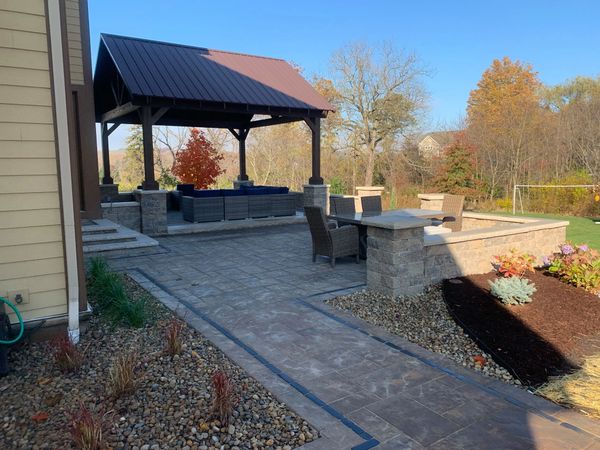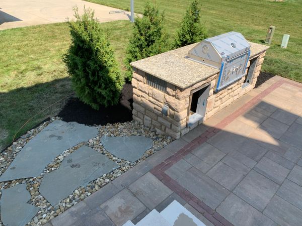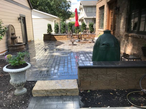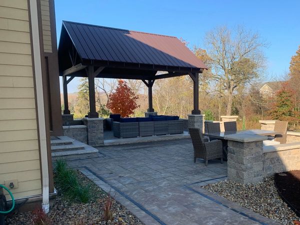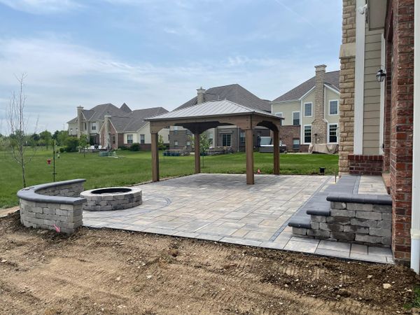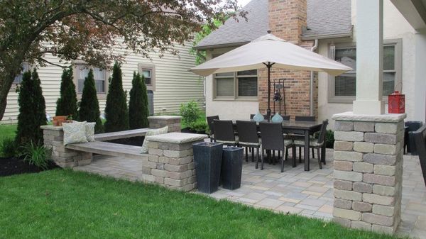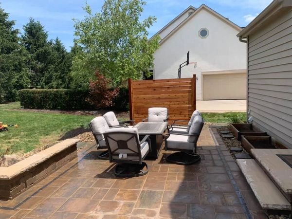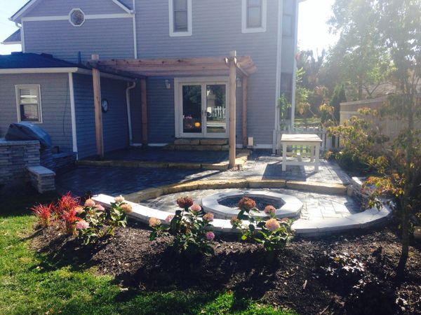 This Upper Arlington resident added a 500 sq. ft patio with Cedar Pergola. The round firepit & built-in grill provide great space for entertaining.