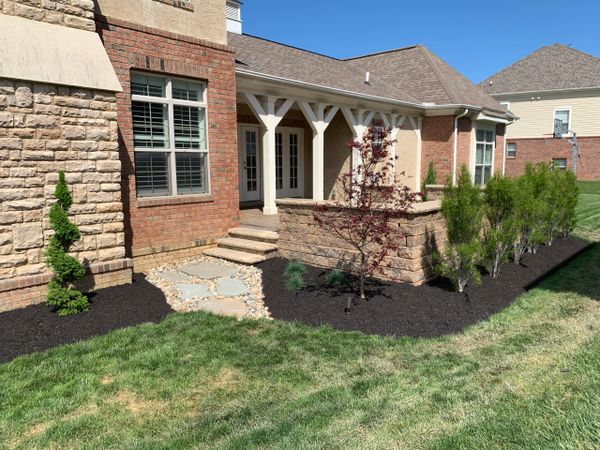 Weekly landscape maintenance on this beautiful Powell residence includes plant bed maintenance, mowing, mulching, and fertilization.